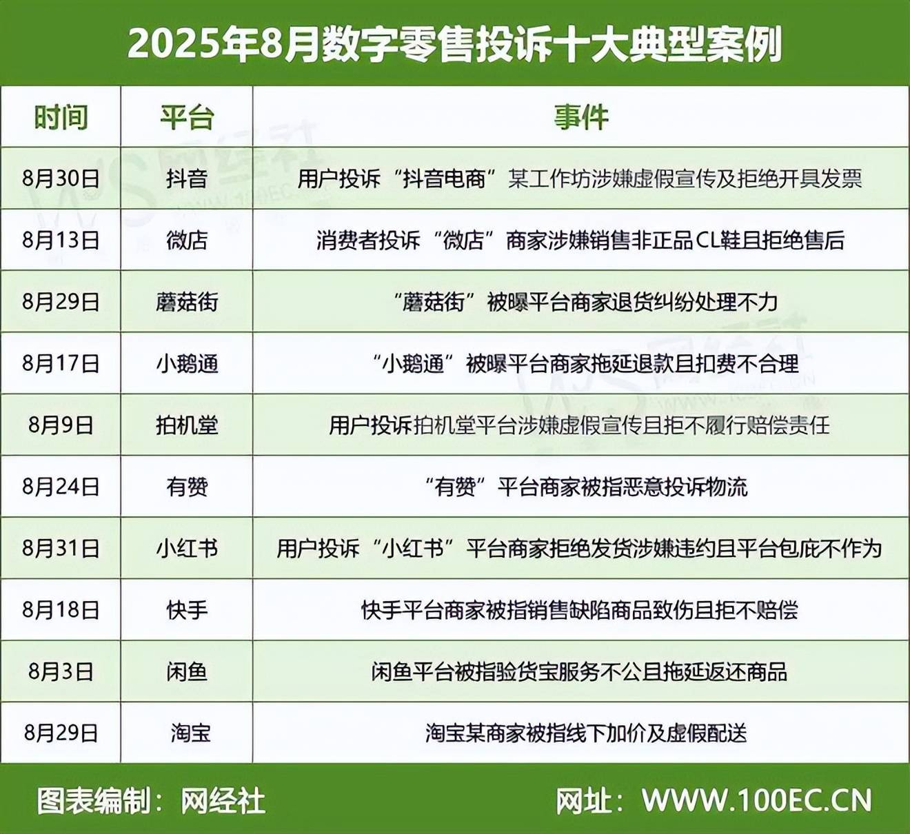 报告涉及了数字零售、生活服务电商及跨境电商三大板块。公布了8月网络消费投诉数据及《2025年8月数字零售十大典型投诉案例》《2025年8月生活服务电商十大典型投诉案例》和《2025年8月跨境电商十大典型投诉案例》。